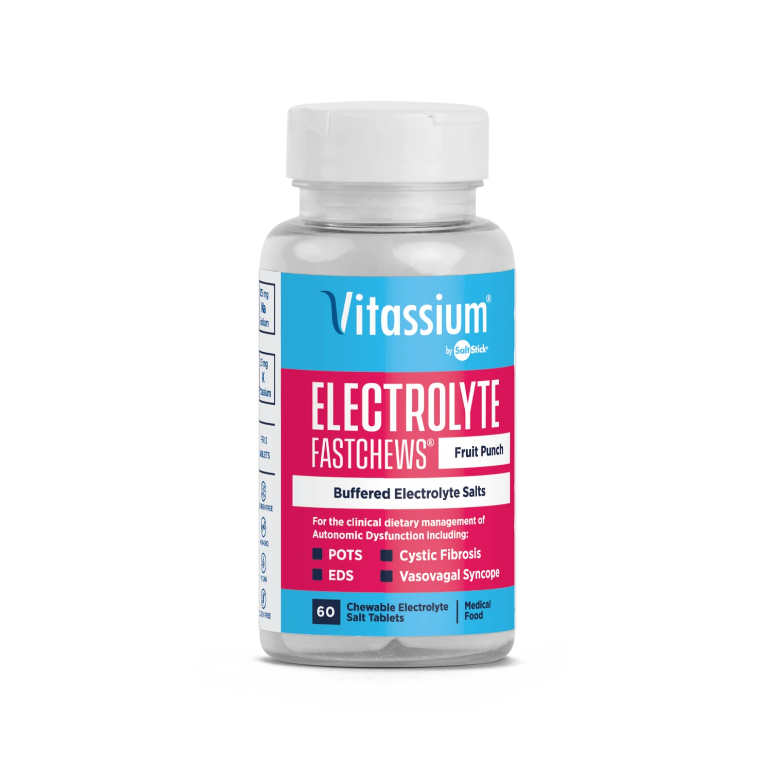 Speciálně vytvořený na podporu lidí žijících s chronickým onemocněním, Vitassium poskytuje sodík a draslík, které pomáhají zvládat příznaky určitých typů dysautonomie, včetně syndromu posturální ortostatické tachykardie (POTS), vazovagální synkopy a ortostatické hypotenze (OH), stejně jako dalších chronických stavů. Zvýšení hladiny elektrolytů může často zmírnit běžné příznaky těchto stavů, jako je závratě a únava, zvýšením objemu krve.